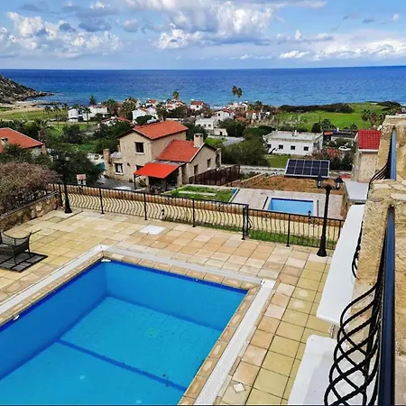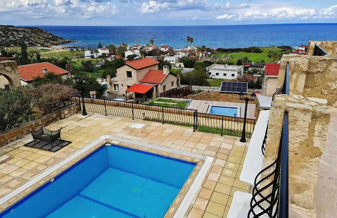 Bella Villas,3Bedroomed, Swimming Pool & Beach距离Alagadi Turtle Beach大约4公里,设有2间卧室和一个露台. 别墅室内的设施包括阳台,梳妆区 和沙发以及设施齐全的厨房.